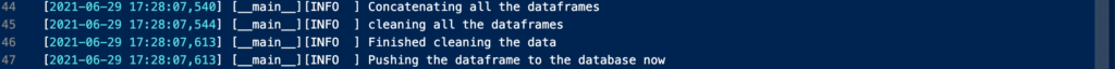 With a FileHandler configured in the LOGGING_CONFIG dictionary specified above, we are able to save and store a log every time we run through our program. In addition, we named the log with a timestamp so that we can easily trace back the log based on the time that it was recorded. Below, please see a snapshot of the logs that we have received from running a system.