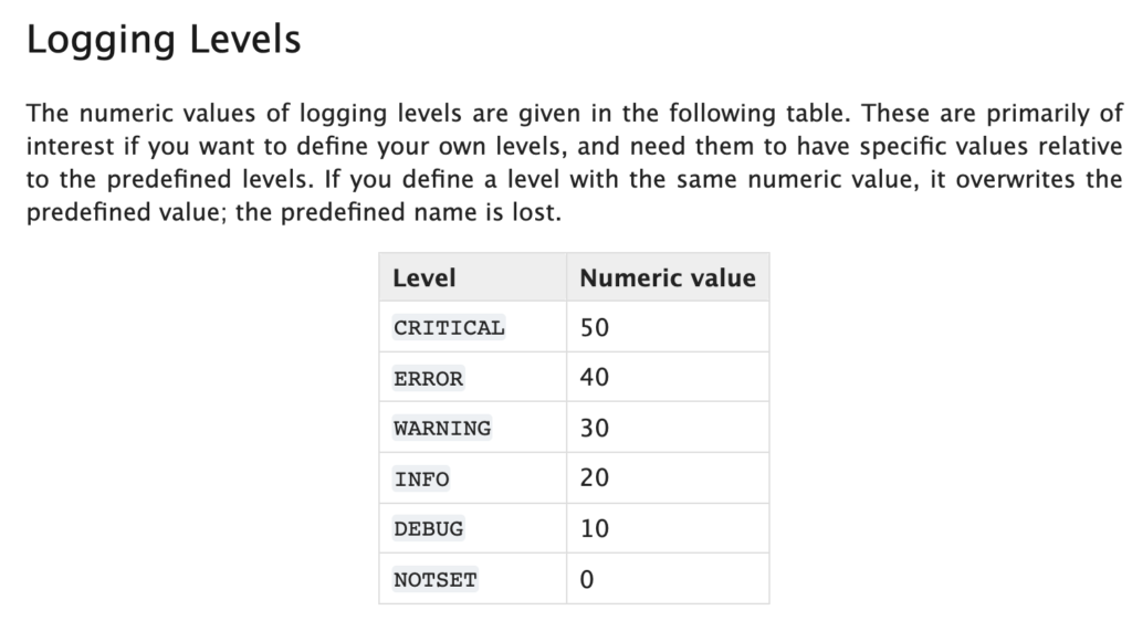 Source: https://docs.python.org/3.8/library/logging.html